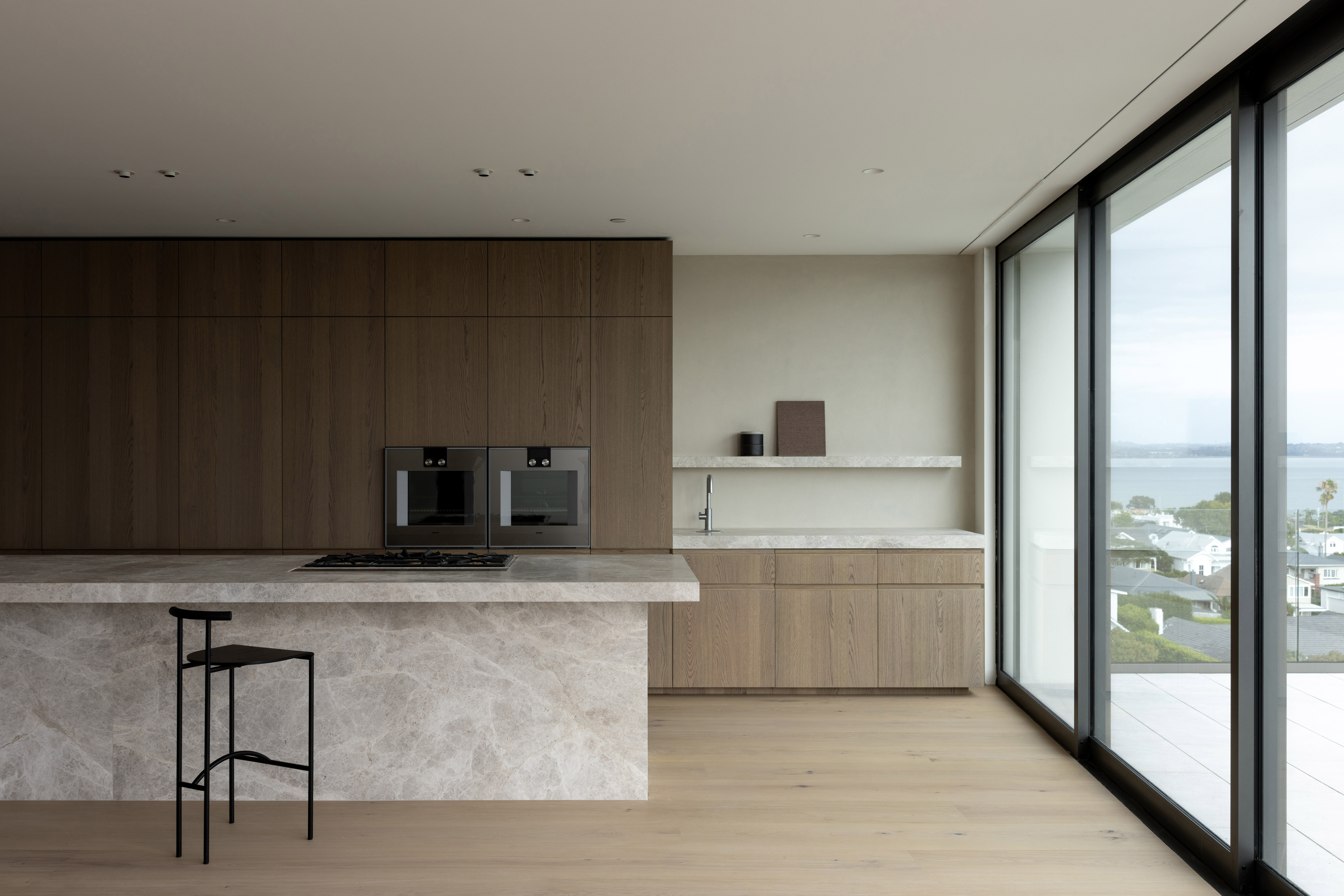 Its carved façade negotiates the tension between privacy and exposure, engaging Jervois Road through a rhythmic composition of concave bays. These voids, shaped by splayed geometries, moderate sightlines while admitting light and shadow, producing spatial depth and subtle visual complexity. In conversation with its neighbour, 113 Jervois, Exhibit offers a considered counterpoint - a subtle inversion of form.