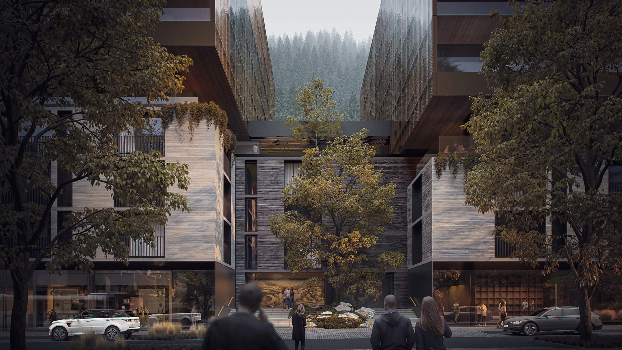 The scheme connects both the mountain and the lake with a porous masterplan that allows landscape and public circulation to wind through it.