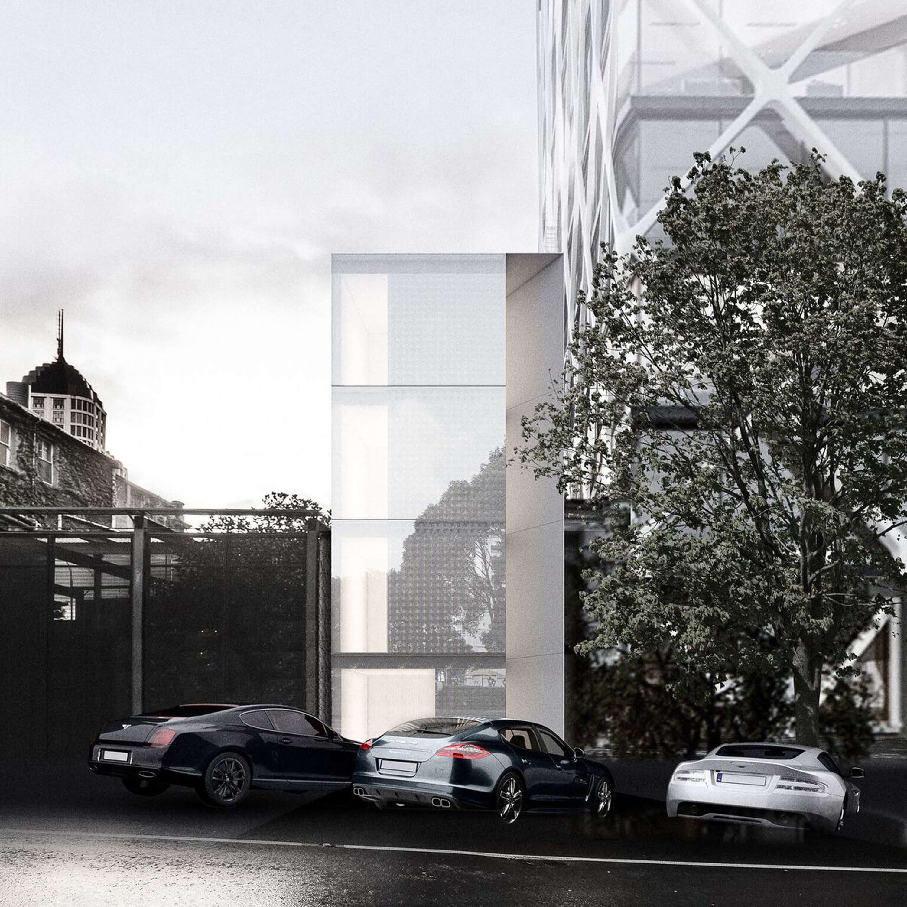 The facade slides to create a porous surface allowing dappled light through into the interior of the street fronting units.
